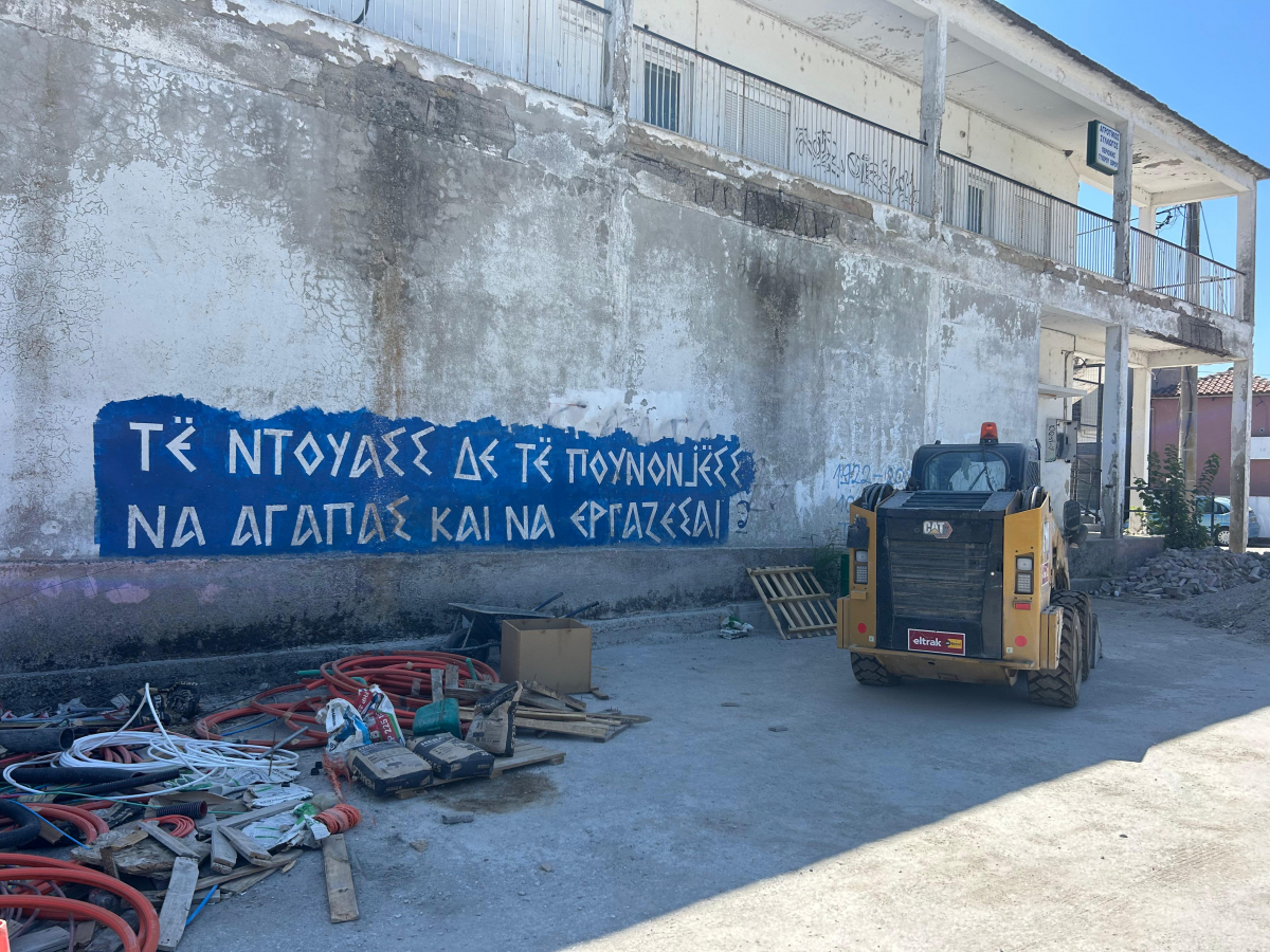 “Të duash dhe të punonjësh ” nga thënia e famshme e Frojdit “Lieben und Arbeiten” (To love and to work), ka qenë slogani i parë që përkthyet në arvanitisht në kuadër të projektit me sloganet në muret e fshatit? Si lindi kjo iniciativë?