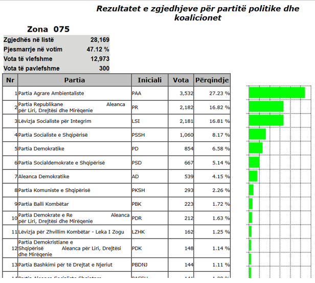 Nga të dhënat e këtij raporti vetëm 5 deputetë socialistë kanë marrë 50% të votave ose më shumë në zonat e tyre zgjedhore. I treti më i votuari ishte deputeti Erion Braçe (7187 vota, 51.17%). Ndërsa i pari më i votuari nga socialistët ishte depueti Ilir Meta (8105 vota 51.54%). Sipas raportit, në ato zgjedhje Partia Demokratike (PD) mori 122 mandate, ndërsa PS-ja mori 10 mandate. Dhe parti të tjera morën pjesën e mbetur të mandateve.
